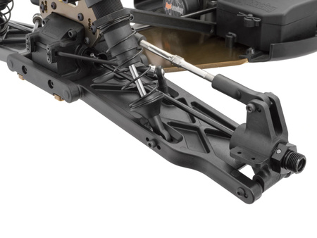 Na obu końcach samochodu Vorza ma wszystko, czego można oczekiwać od zestawu do rywalizacji, w tym konstrukcję odwróconego bloku kierowniczego, opcjonalne otwory na zawiasy dla tylnych słupków i mnóstwo zmian geometrii!
